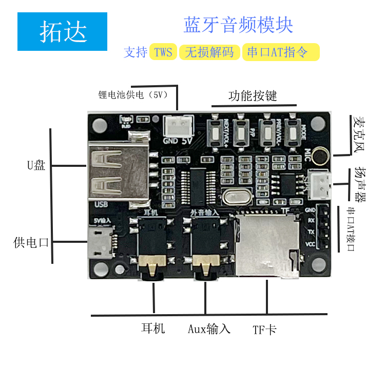 提醒:测试TWS功能,需使用两个模块(购买2个)来测试。