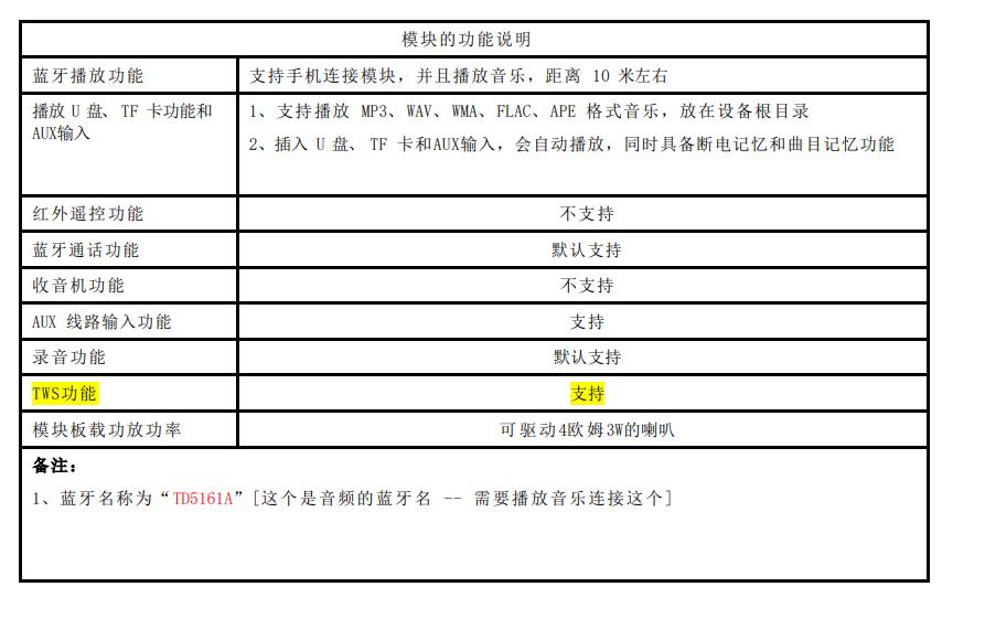 此芯片支持TWS功能,具体实现已在对应的TD610模块上体现。